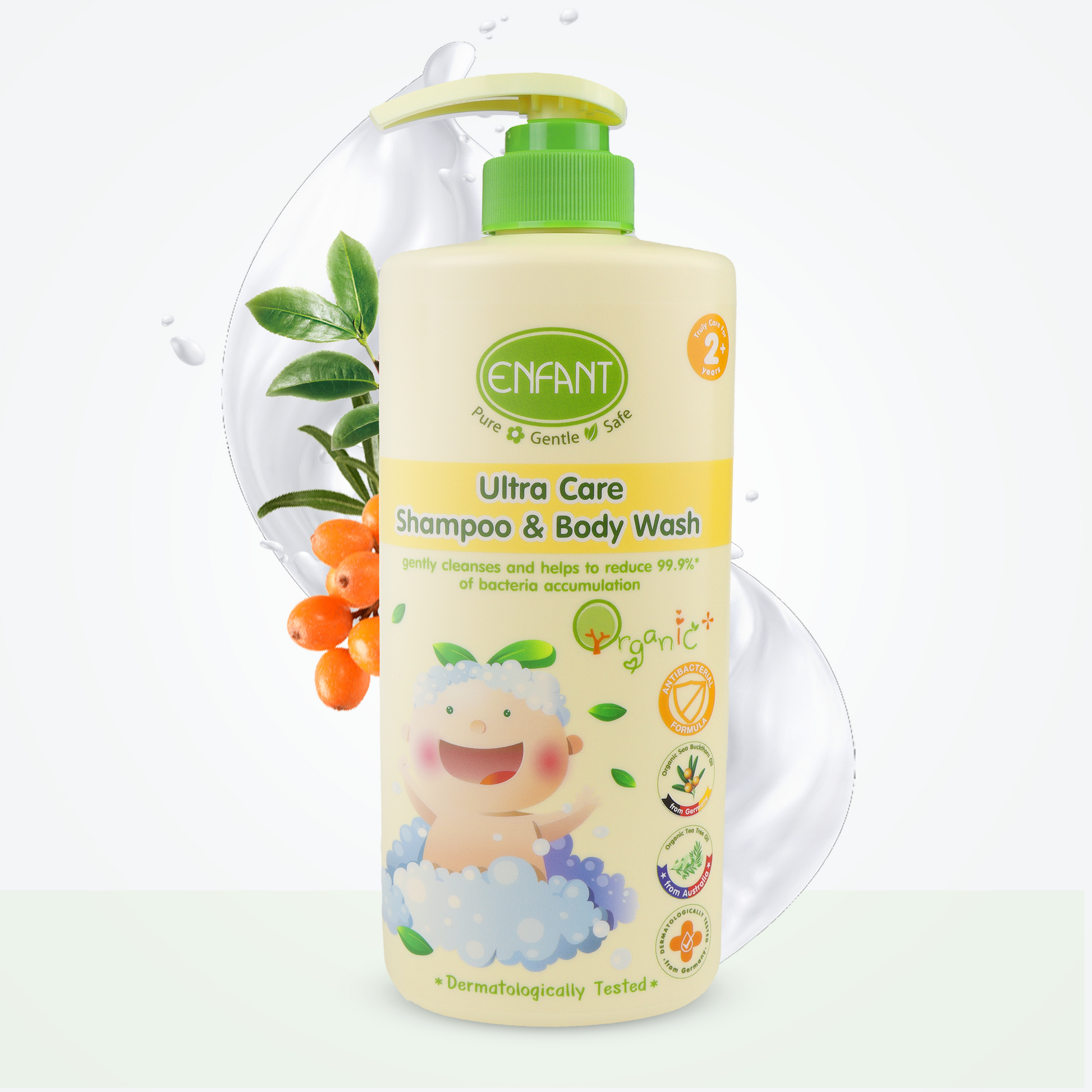 ينظف بلطف ويساعد على تقليل تراكم البكتيريا بنسبة 99.9%. ينظف بشرة طفلكِ بثقة بفضل تركيبته الطبيعية المضادة للبكتيريا. مصمم خصيصًا لطفلكِ مع رغوة الشوفان الأمينية، وهو عامل تنظيف طبيعي. غني بخلاصة عضوية ثلاثية من زيت الأفوكادو وزيت نبق البحر وزيت الزيتون لترطيب البشرة والشعر. غني بمضادات البكتيريا الطبيعية من زيت شجرة الشاي.
